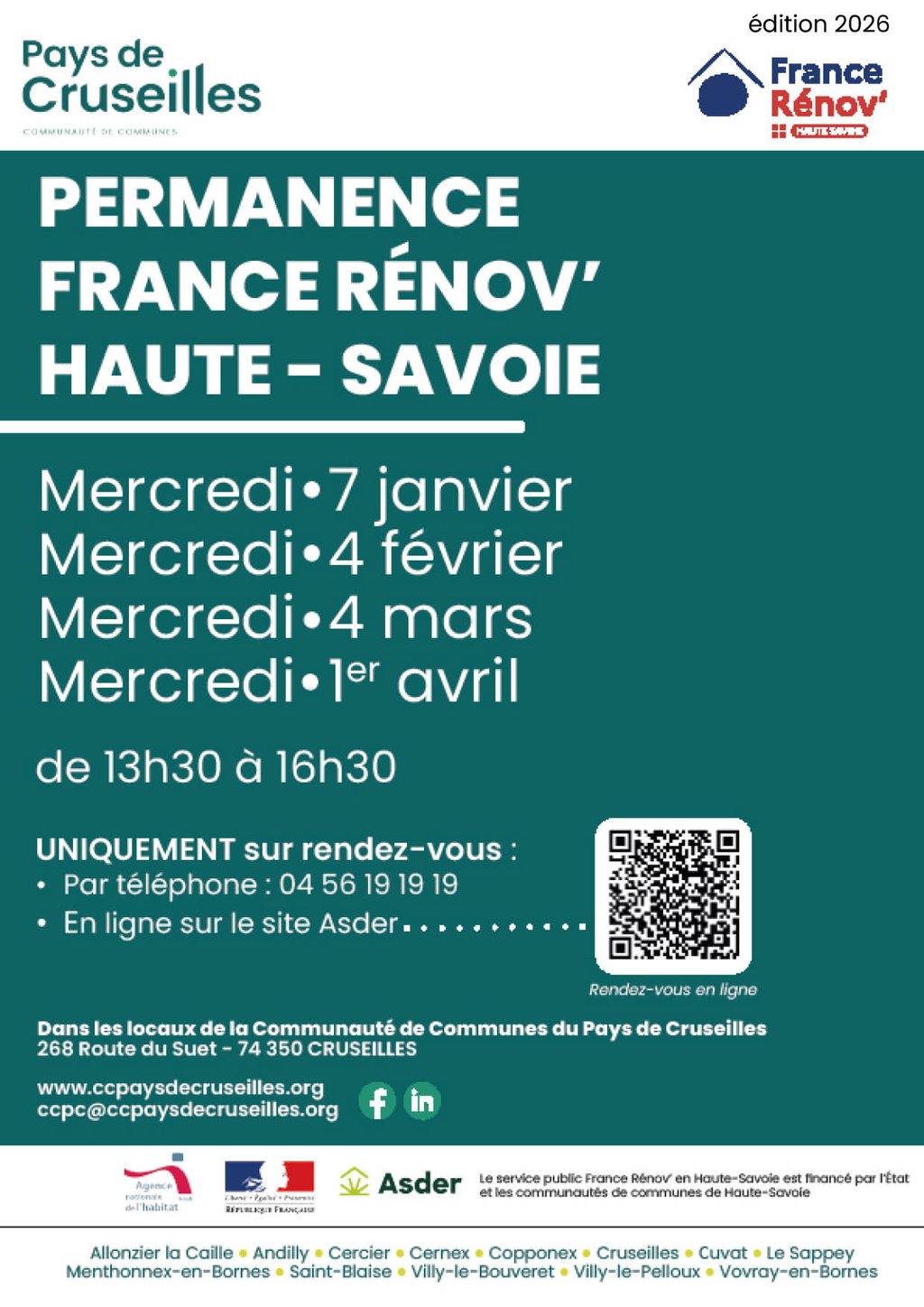 Les prochaines permanences mensuelles France Rénov’ (conseil aux particuliers en matière de rénovation énergétique), auront lieu aux dates suivantes dans les locaux de la CCPC :