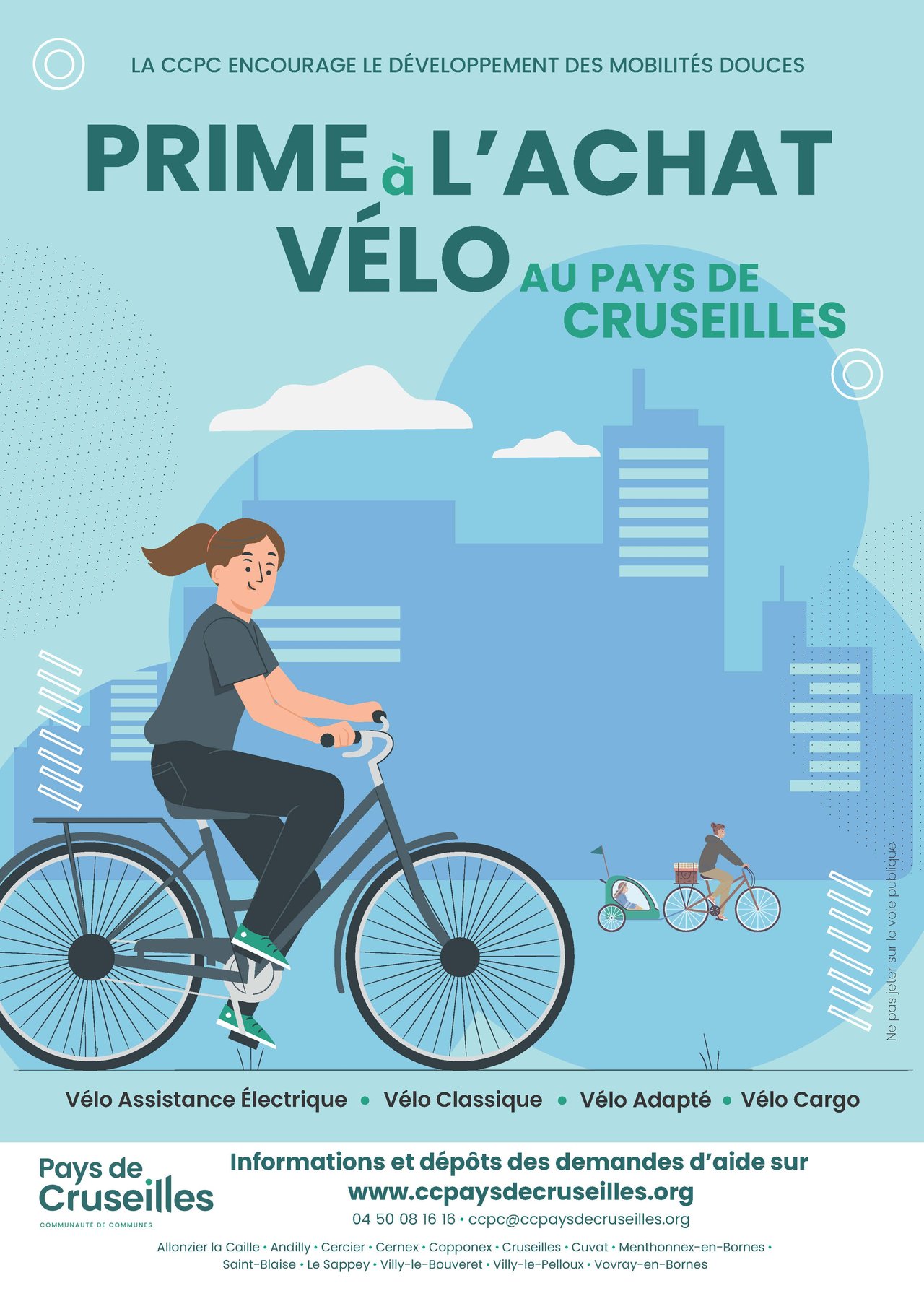 La Communauté de Communes du Pays de Cruseilles aide ses habitants dans l’acquisition d’un vélo afin d'encourager les modes de transports doux.