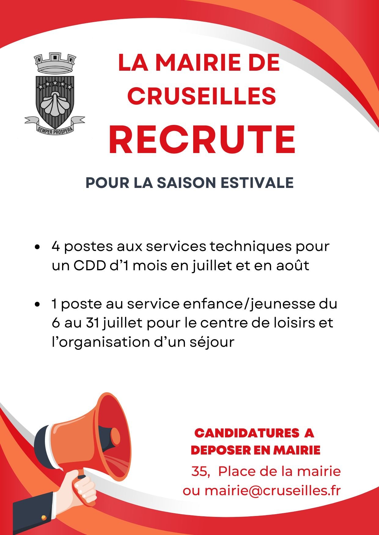 LA MAIRIE RECRUTE POUR LA SAISON ESTIVALE