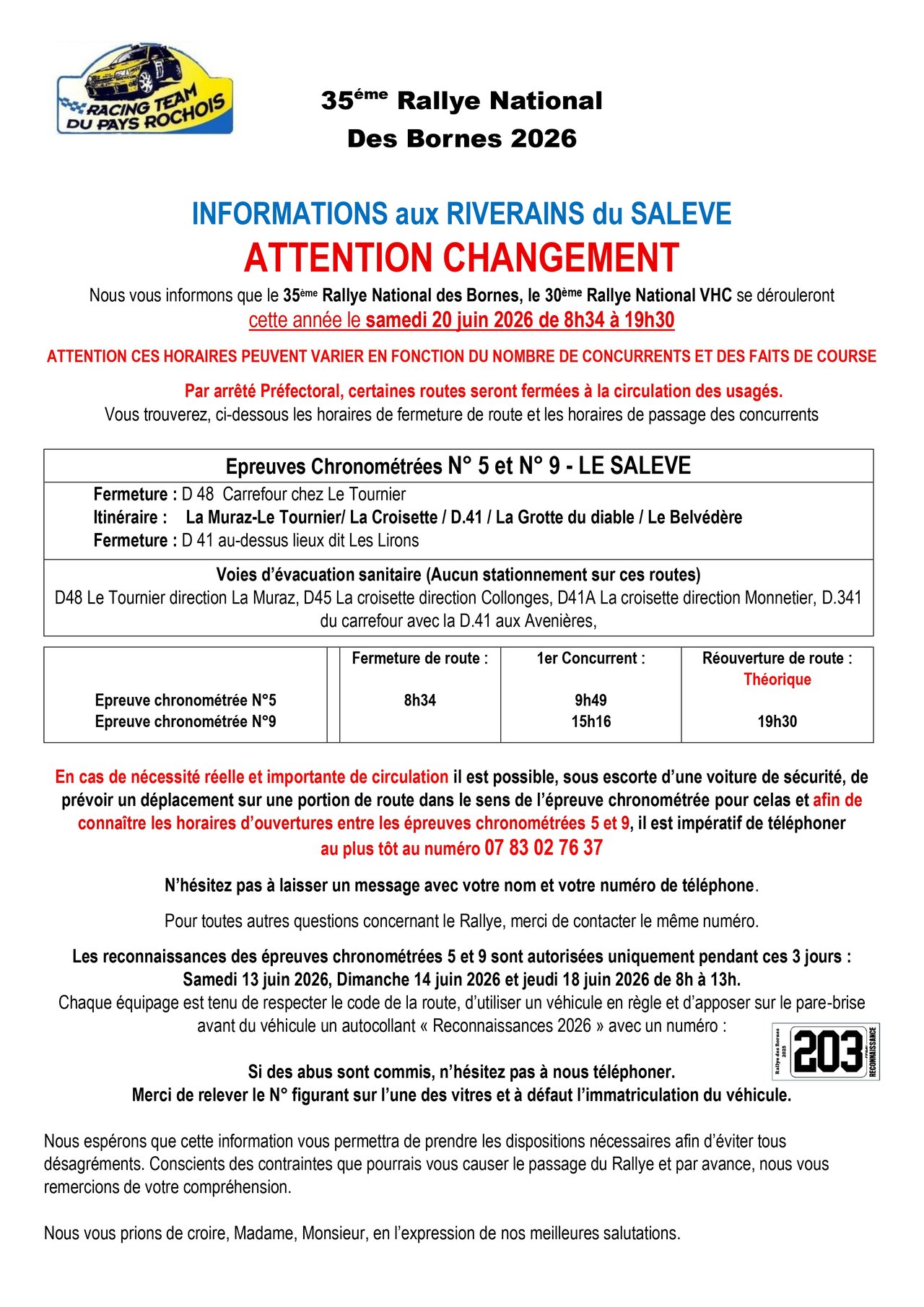 INFORMATION CONCERNANT LE RALLYE DES ...