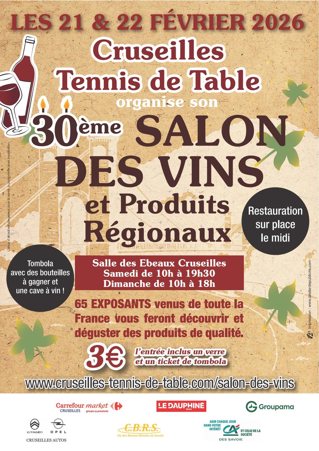 Salon des Vins organisé par l'association Cruseilles Tennis de Table au gymnase des Ebeaux