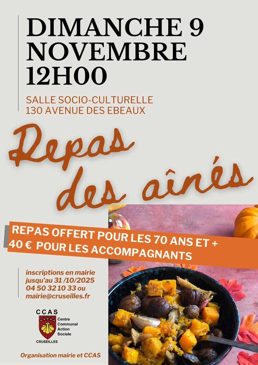 Le traditionnel repas des aînés aura lieu le dimanche 9 novembre 2025 à 12h, à la salle socio-culturelle.
