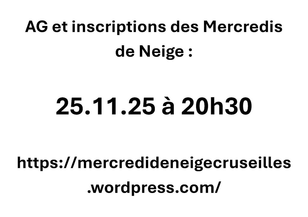 La nouvelle saison de ski approche, l'association "Les mercredis de neige" propose d'emmener les enfants qui le souhaitent faire du ski . Les inscriptions sont le mercredi 25/11/2025 à 20h30 salle de réunion du gymnase des Ebeaux.