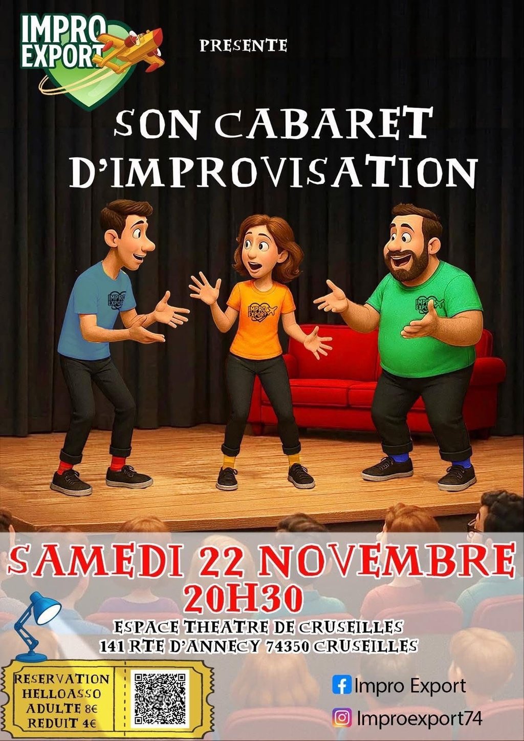 Réservation conseillée : https://www.helloasso.com/associations/improexport-cruseilles/evenements/spectacle-d-improvisation-par-improexport-le-samedi-22-mars-2025%EF%BF%BC