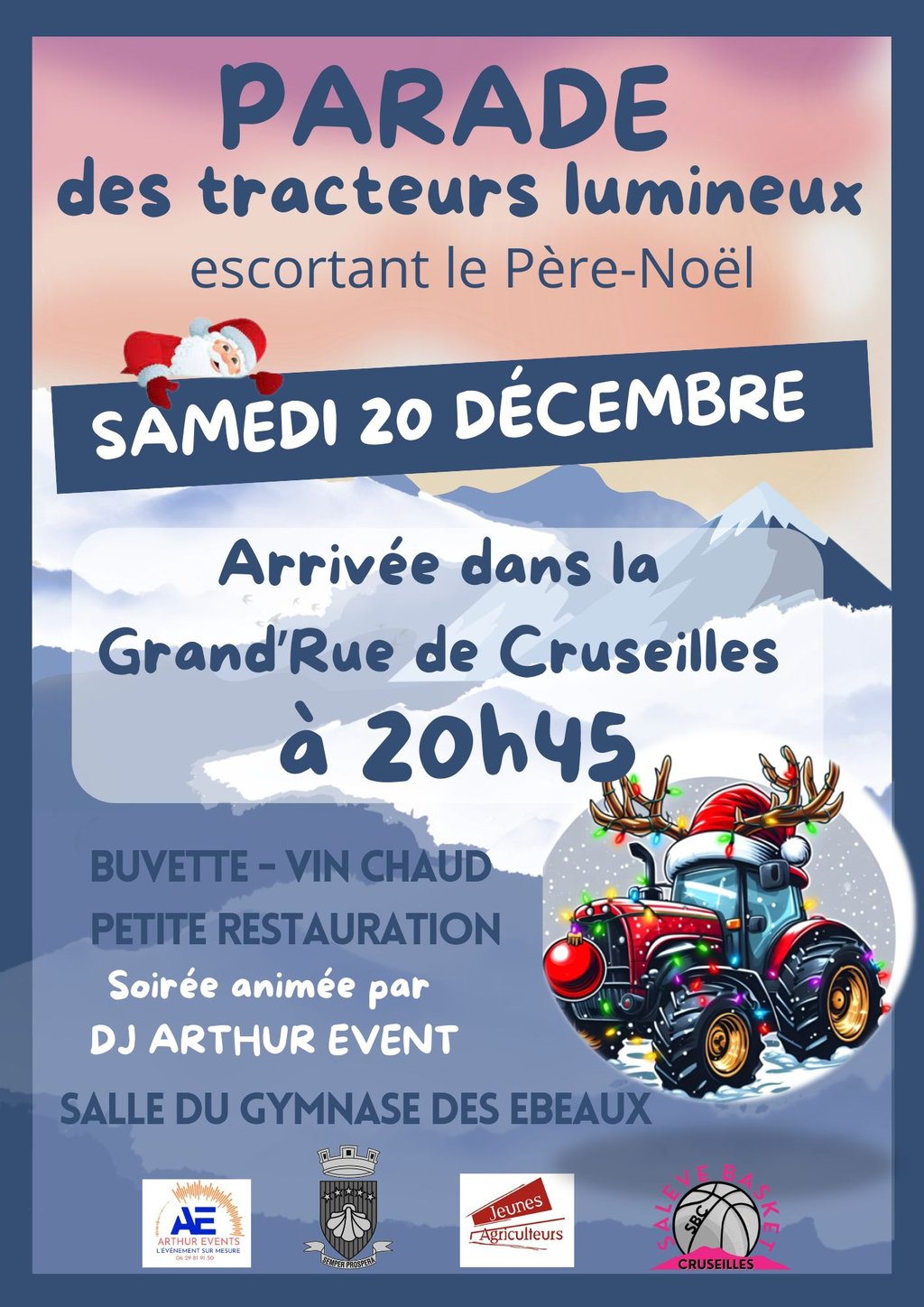 Les Jeunes Agriculteurs feront leur parade de tracteurs illuminés et amèneront le Père-Noël à Cruseilles.
