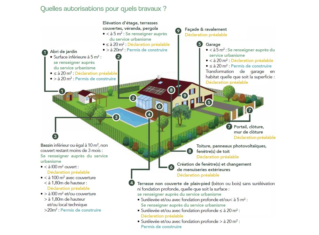 ⇒ Pour les projets suivants (liste non exhaustive), le dépôt d’une Déclaration Préalable est nécessaire, pour télécharger les formulaires à remplir et connaitre la procédure à suivre, veuillez cliquer ici :